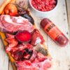 Veis 92% (liha 30%, magu 20%, kont 10%, süda 10%, kops 10%, neer 7%, maks 5%), puu- ja köögiviljasegu 8%.