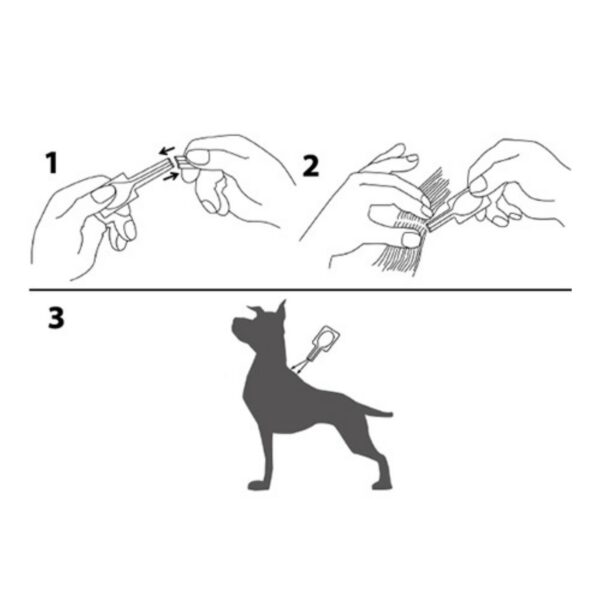 • Eemaldage pipeti kork, lükake looma karvad laiali ja manustage nö õlgade vahele, ühte või kahte kohta, otse naha pinnale, üks pipett nädalas, nii kaua kui vaja, mitme kuu jooksul.