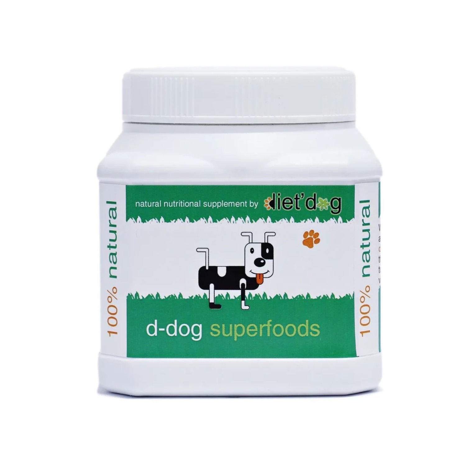 D-dog superfoods sisaldab mõnda kõige toitvamat rohelist “supertoitu” (spirulina, klorella), linaõli, roheline savi, hernes, õllepärm (sisaldab rikkalikult vitamiine ja mineraalaineid lemmikloomadele nagu B-grupi vitamiinid ja seleen ), Montmorilloniit savi, ELis registreeritud probiootikumid, lutsern ja nõges, et aidata koeri ja kasse hoida aktiivsed ja terved.