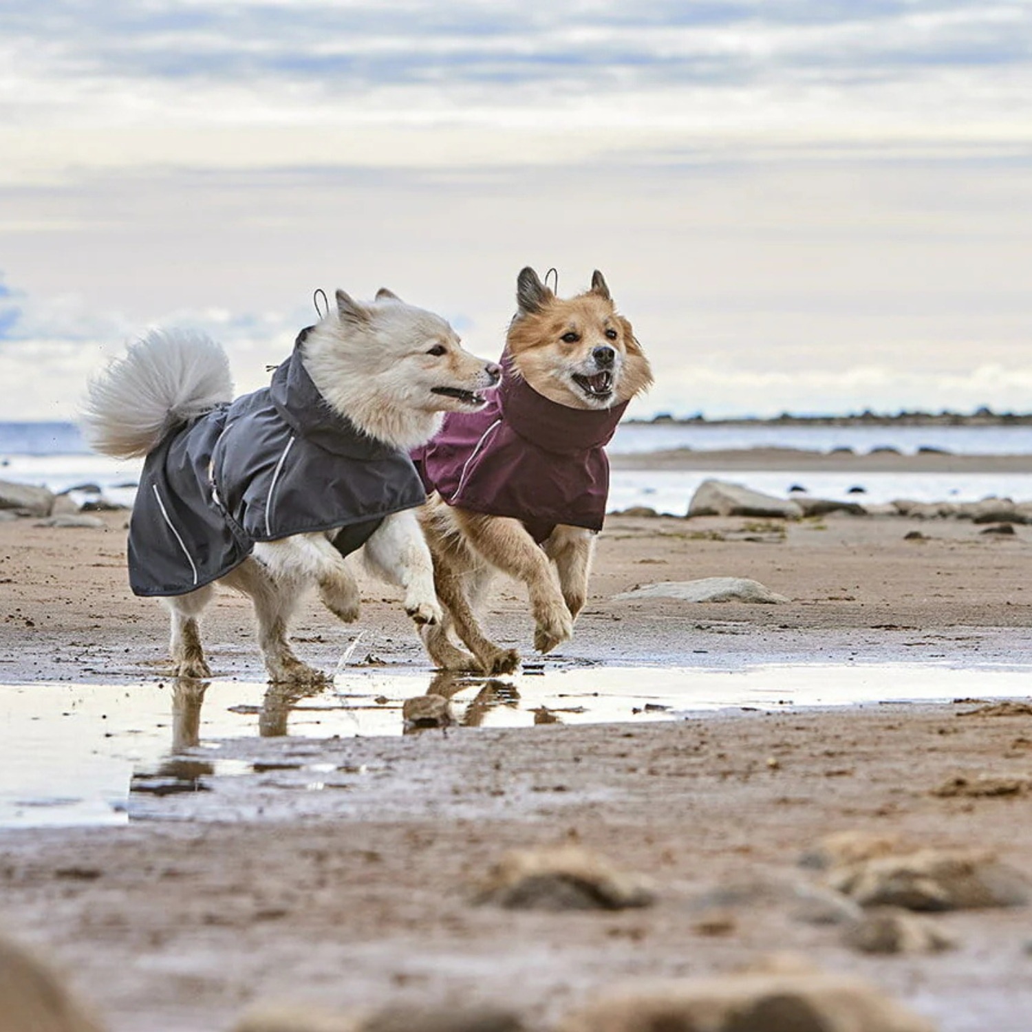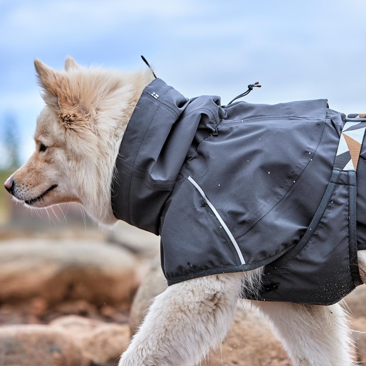 Kinnitused tagumistel jalgadel tagavad, et jope püsib kindlalt koeral seljas ka aktiivsemal liikumisel.