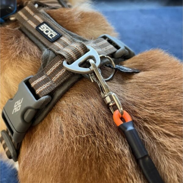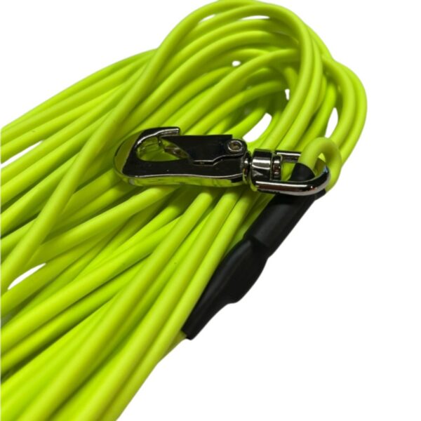 Ilmastikukindel, pehme plastikukihiga kaetud jäljerihm, mis sobib väga hästi kasutamiseks ka väikest kasvu koertel.