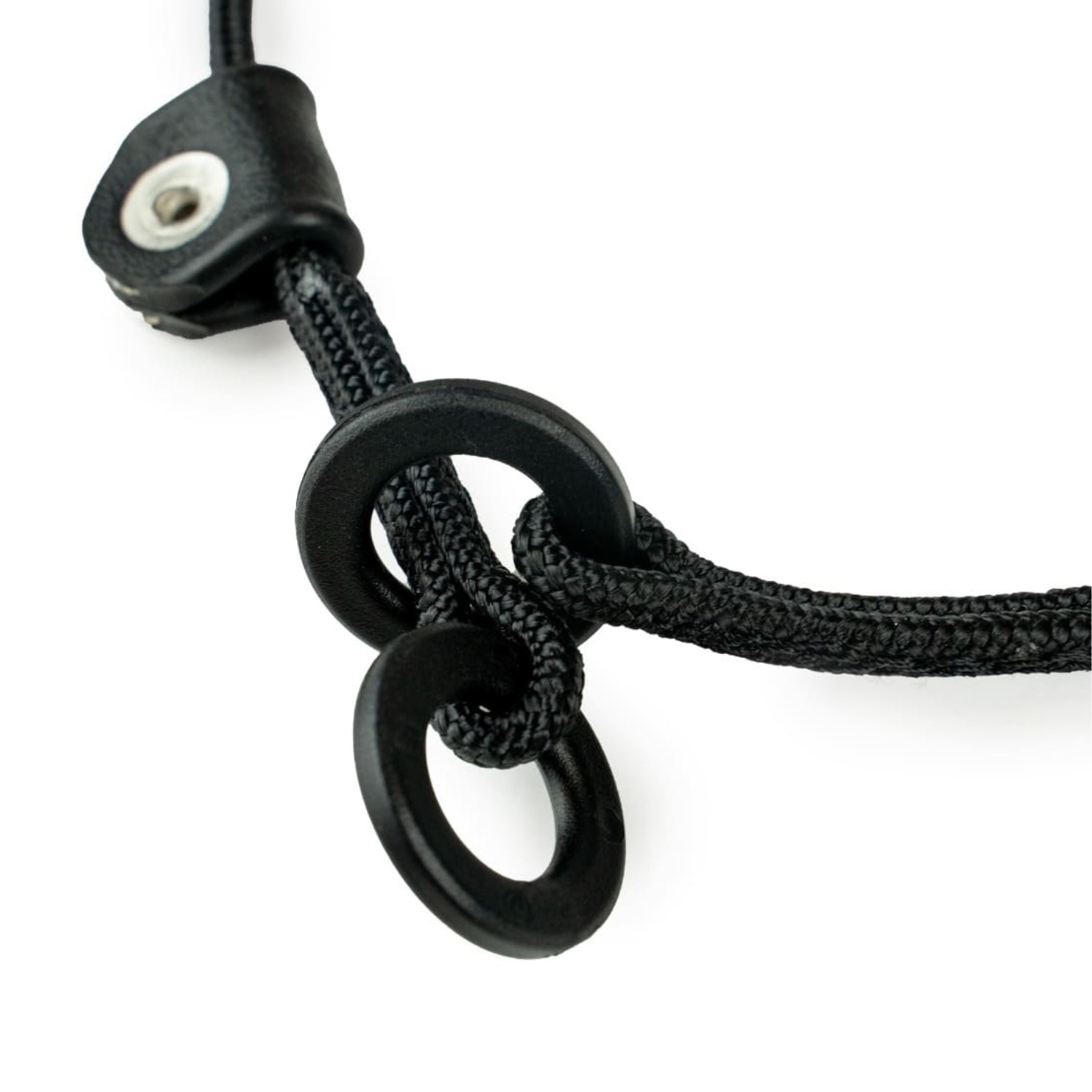 Valmistatud tugevast 3,5 mm tekstillnöörist, mida treenerid kasutavad sageli ka agressiivsete või paanikasse kalduvate koerte ohjamiseks.