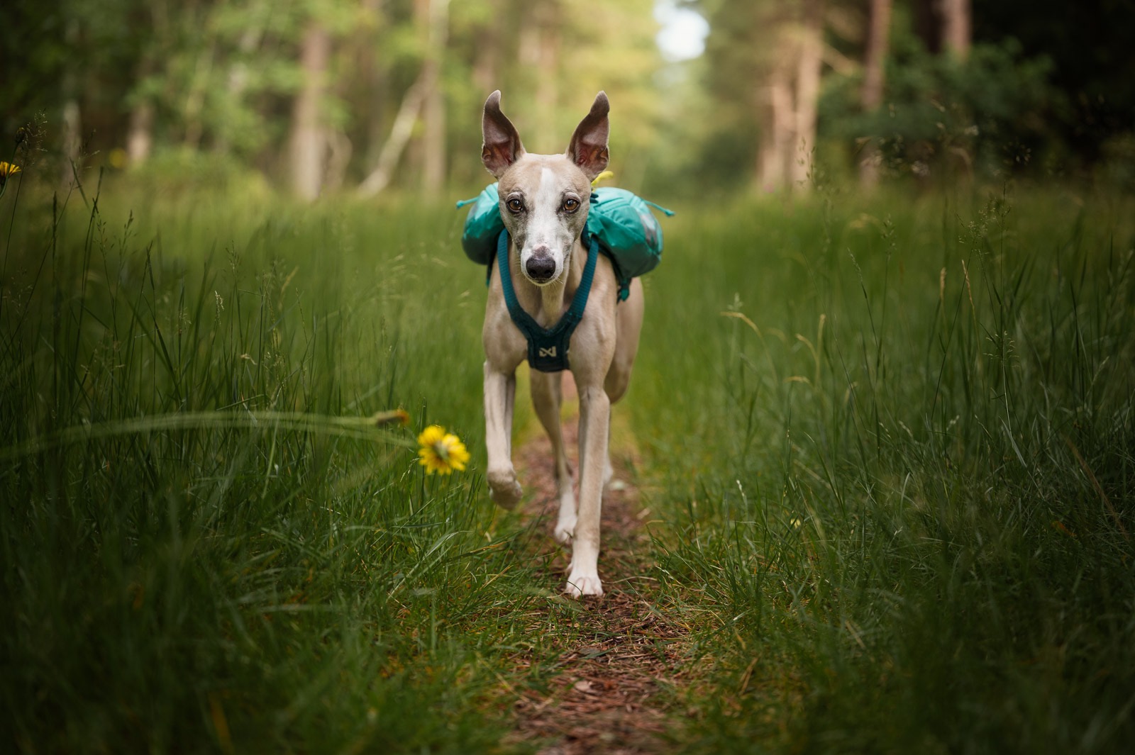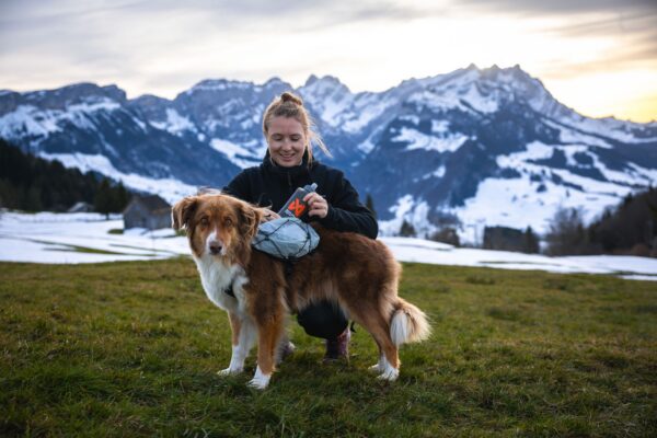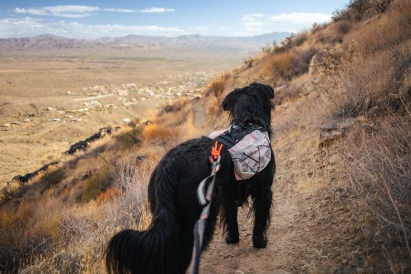 Trail light koeraseljakott on saadaval suurustes XS-XL, värvitoonis hall/must ja sinakasroheline.