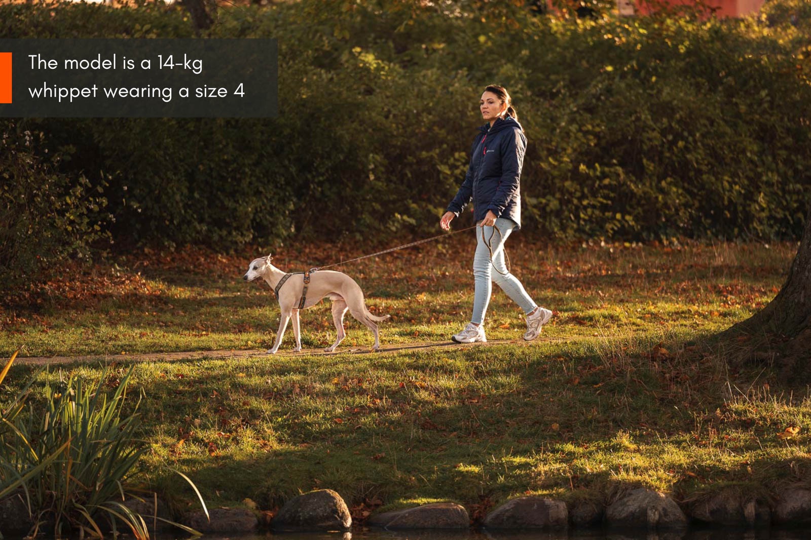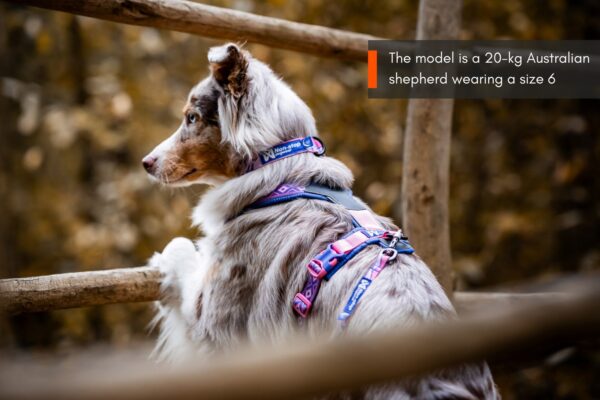 Jalutusrihm kinnitub tagaküljel oleva D-rõnga või eesmise tugevdatud keskmise tõmbevastase kinnituse külge. Koerale optimeeritud sobivusega polsterdatud Y-kujuline kael soodustab vaba õlaliikumist ja minimaalseid hingamisraskusi kergelt tõmbekoertele.