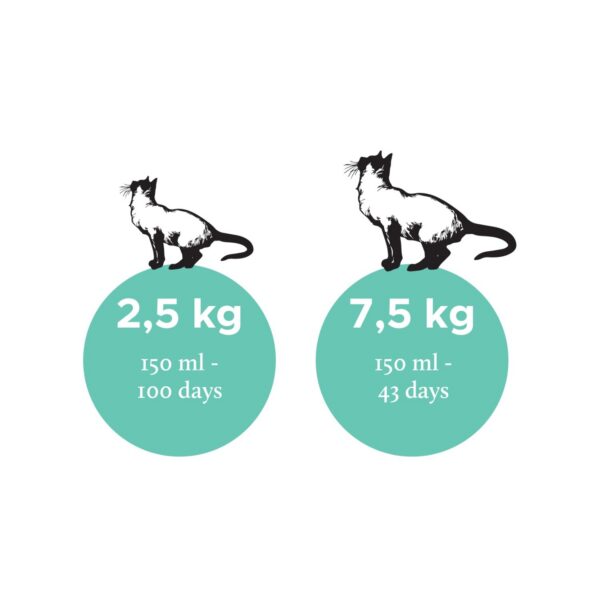 5 kg kaaluva kassi jaoks annab üks päevane annus sama koguse rasvhappeid, mida leidub 100–125 grammis rasvases kalas ja lihas.