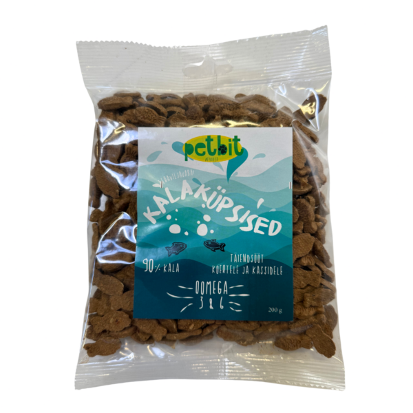 PetBit kalaküpsised sisaldavad rohkelt Oomega 3 & 6 rasvhappeid. Oomega 3 & 6 on kasulikud nägemisele, liigestele ja nahale. Samuti toetavad neerude, maksa ja südame tööd ning on põletikuvastase toimega.