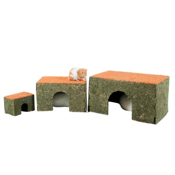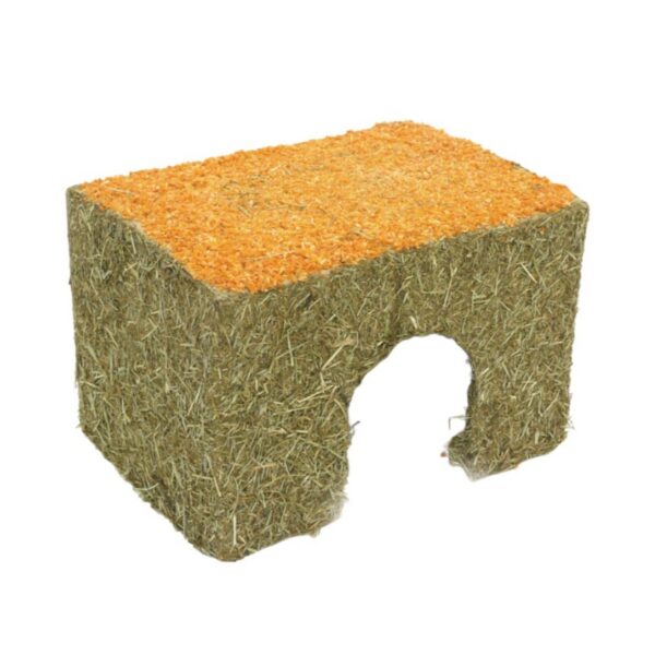 Majake on valmistatud vastupidavast pärgamentpapist ning kaetud heina ja porgandiga, pakkudes nii meelelahutust kui ka toitu.
