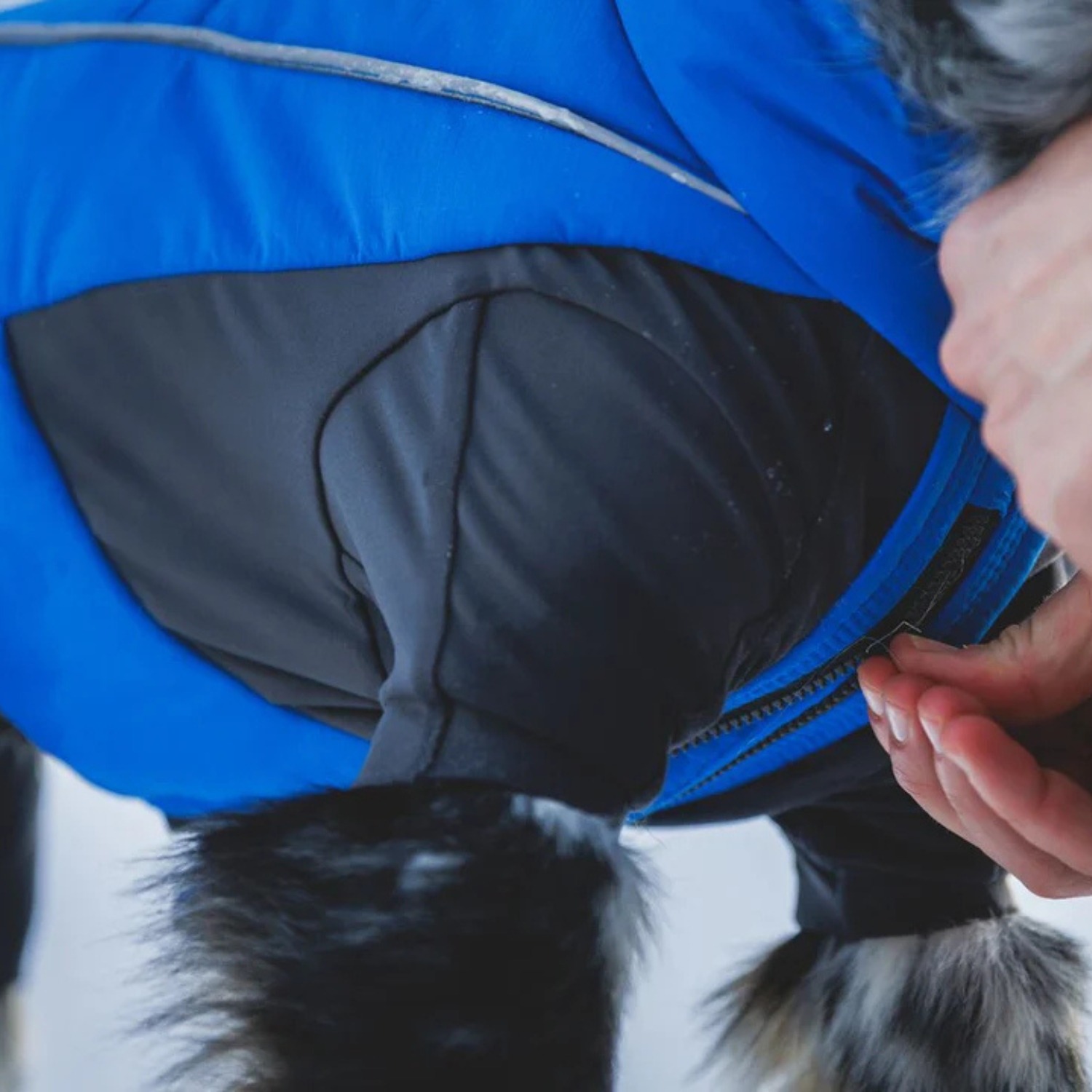Vee- ja tuulekindel pealiskangas kaitseb talviste olude eest ning kohev taaskasutatud polüestrist soojustus hoiab koera keha soojas just seal, kus seda kõige rohkem vaja on.