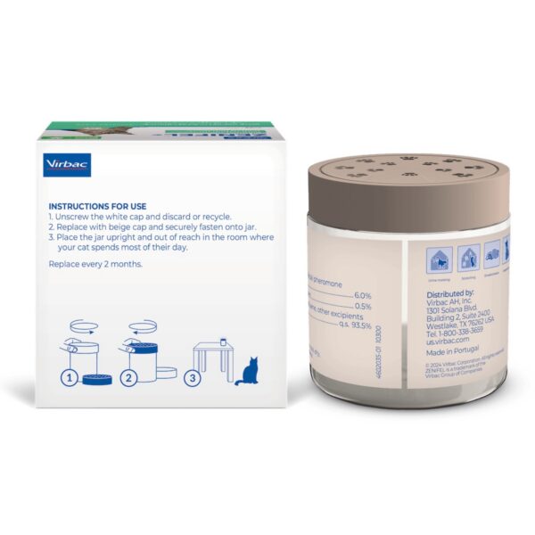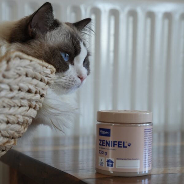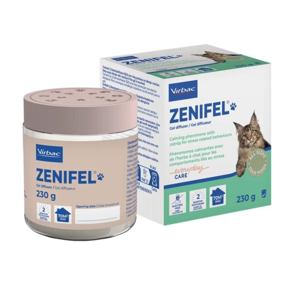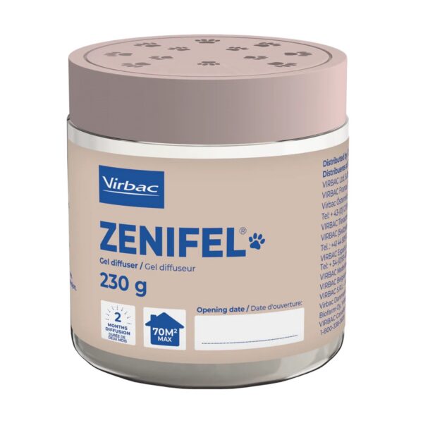 Virbac Zenifel® Geel-difuusor on rahustav, stressivastane difusioongeel kassidele, mis aitab leevendada ärevusest tingitud käitumist tänu pidevale rahustavate feromoonide levikule.