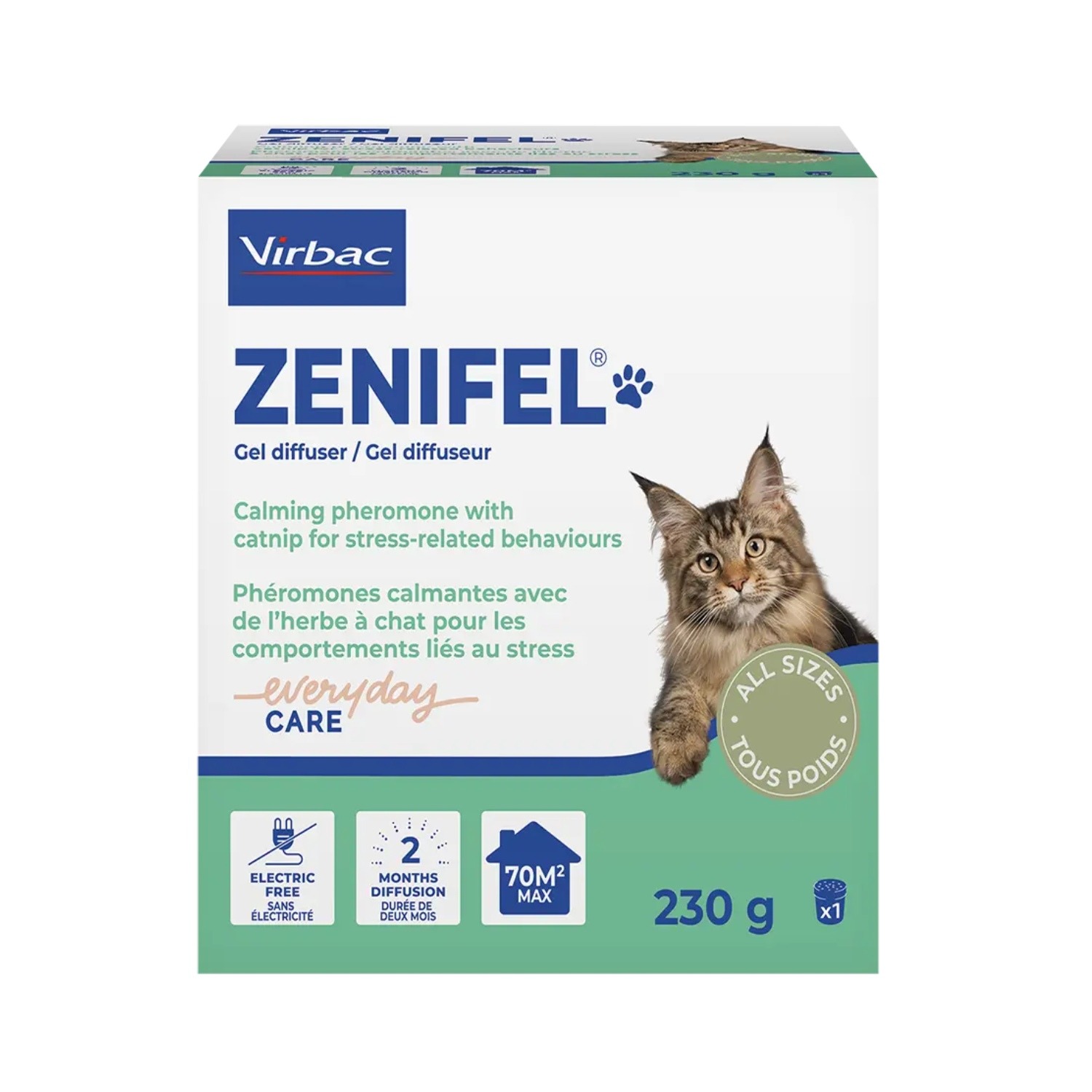 Virbac Zenifel® Geel-difuusor on rahustav, stressivastane difusioongeel kassidele, mis aitab leevendada ärevusest tingitud käitumist tänu pidevale rahustavate feromoonide levikule.